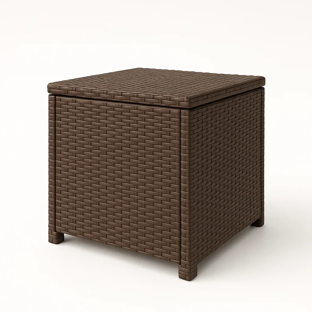 Baúl de almacenamiento de plástico con efecto ratán marrón 40x40x45 cm