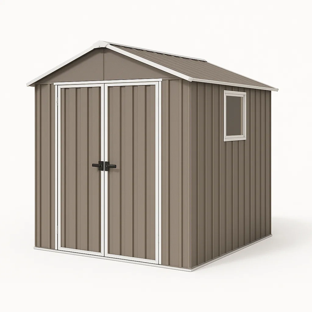 Cobertizo de jardín de acero marrón con doble puerta y ventana 213x130x185 cm